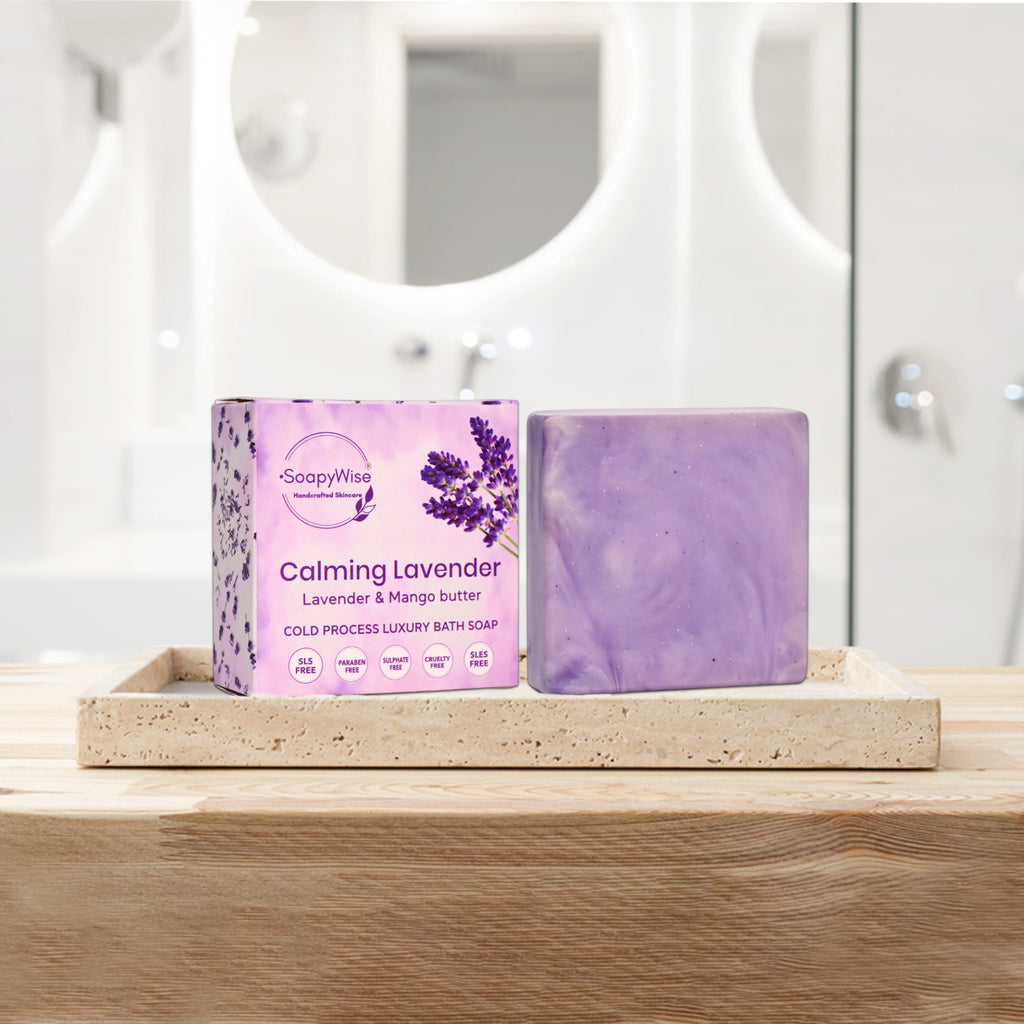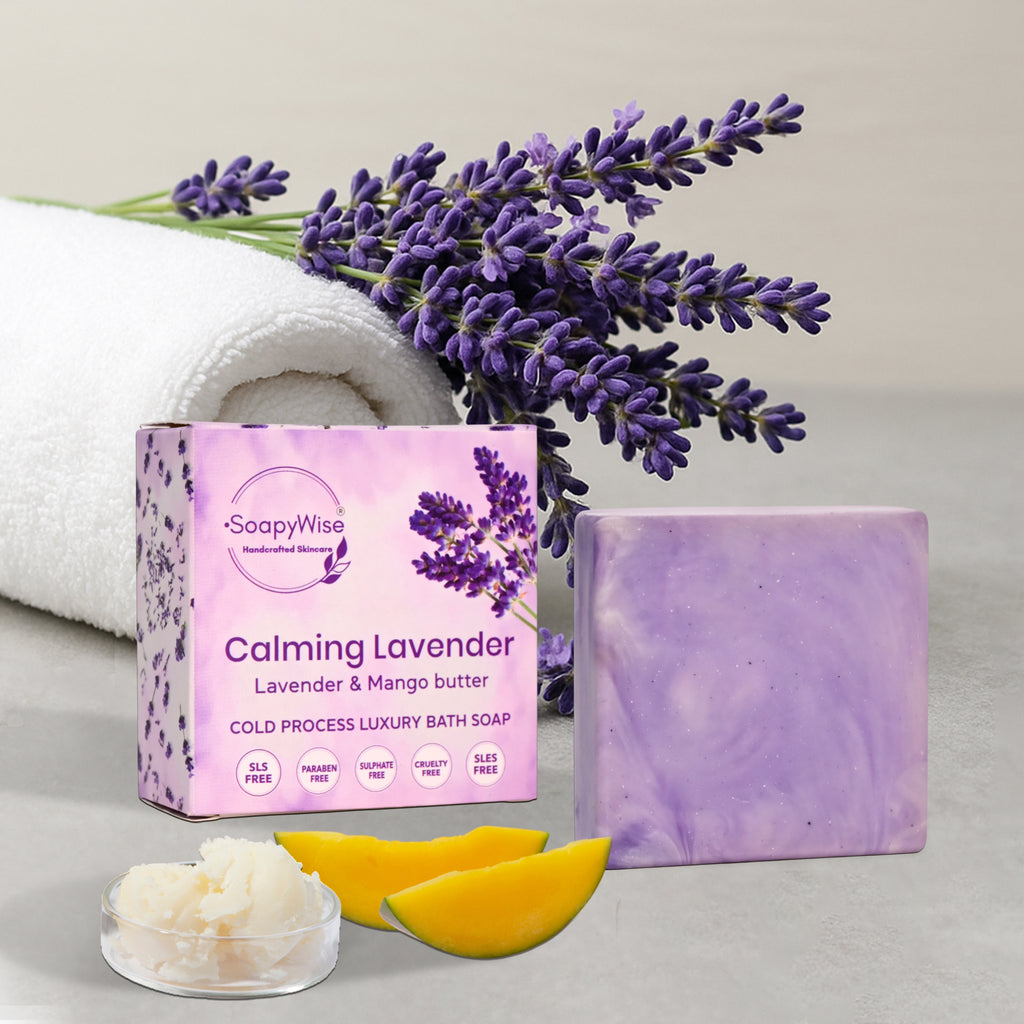 Indulge in a luxurious bathing experience with our Calming Lavender Mango Soap—a perfect blend of skincare and artistry. Handmade using the cold process method, this soap retains natural glycerine, ensuring deep hydration and nourishment. Infused with the soothing essence of lavender, it promotes relaxation and enhances skin health, while mango butter deeply moisturizes, leaving your skin soft, smooth, and radiant.
